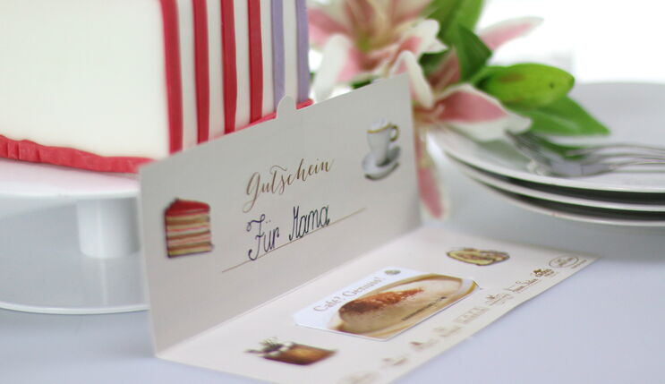 Für ein Frühstück zu zweit, einen Kaffeeplausch, ein Abendessen oder einfach als "süßes Mitbringsel" für die Mama. Unsere Gutscheincard sowie unser Print@Home‐Gutschein sind in allen Betrieben der Familie Querfeld einlösbar und können bequem über unseren Onlineshop bestellt werden. Gutscheincards sind selbstverständlich auch in all unseren Kaffeehäusern erhältlich und zaubern Ihrer Mama mit Sicherheit ein Lächeln ins Gesicht!